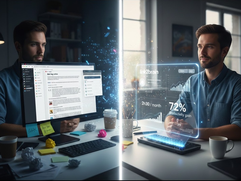 L’IA collaborative change la donne. Voici une analyse comparative entre la méthode traditionnelle et la méthode Link2Brain pour produire un article de blog et un email mensuel.